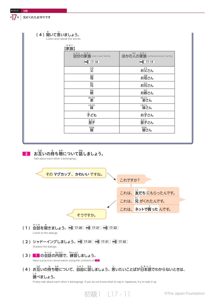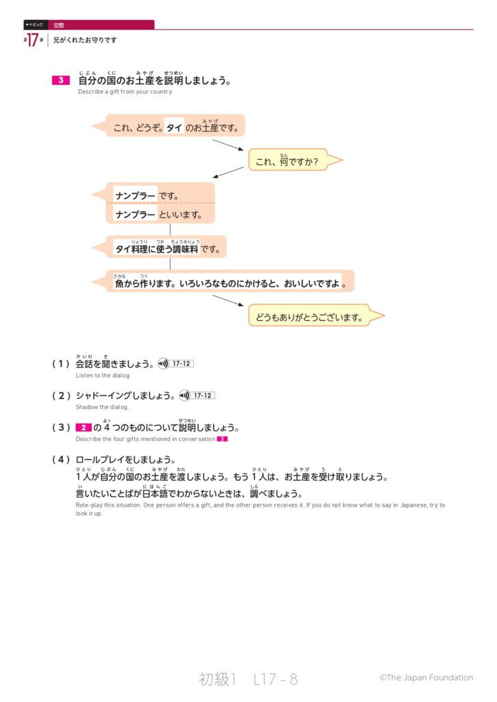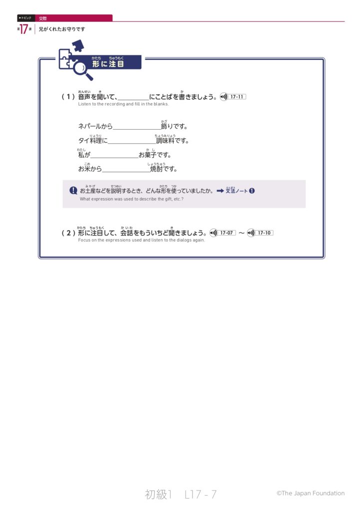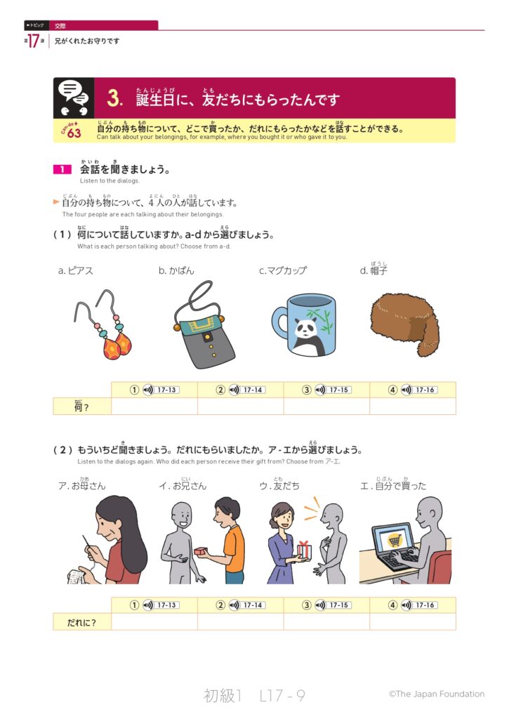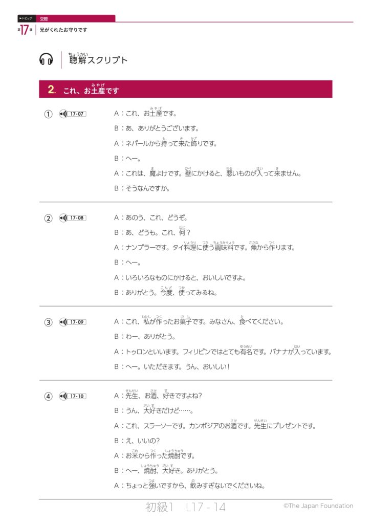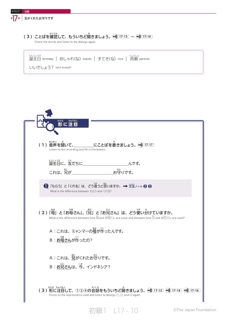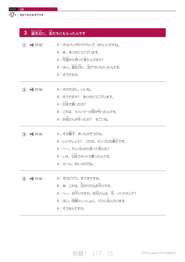 第17課「兄がくれたお守りです」(トピック:交際)
