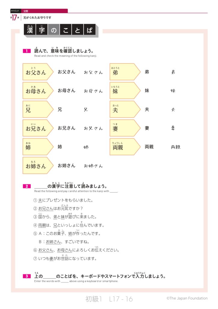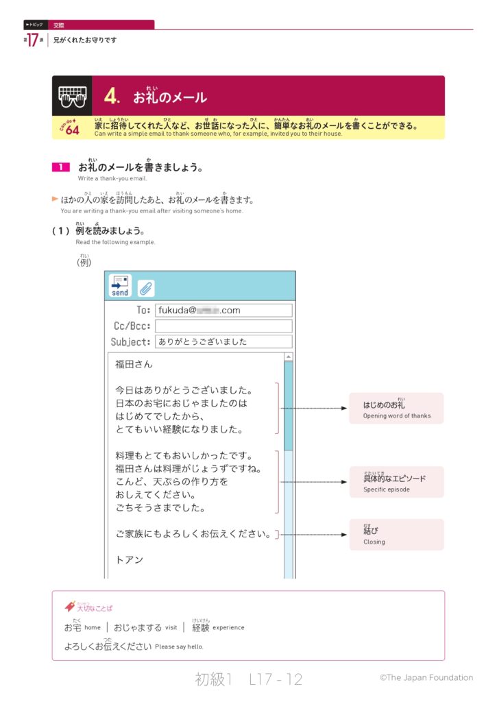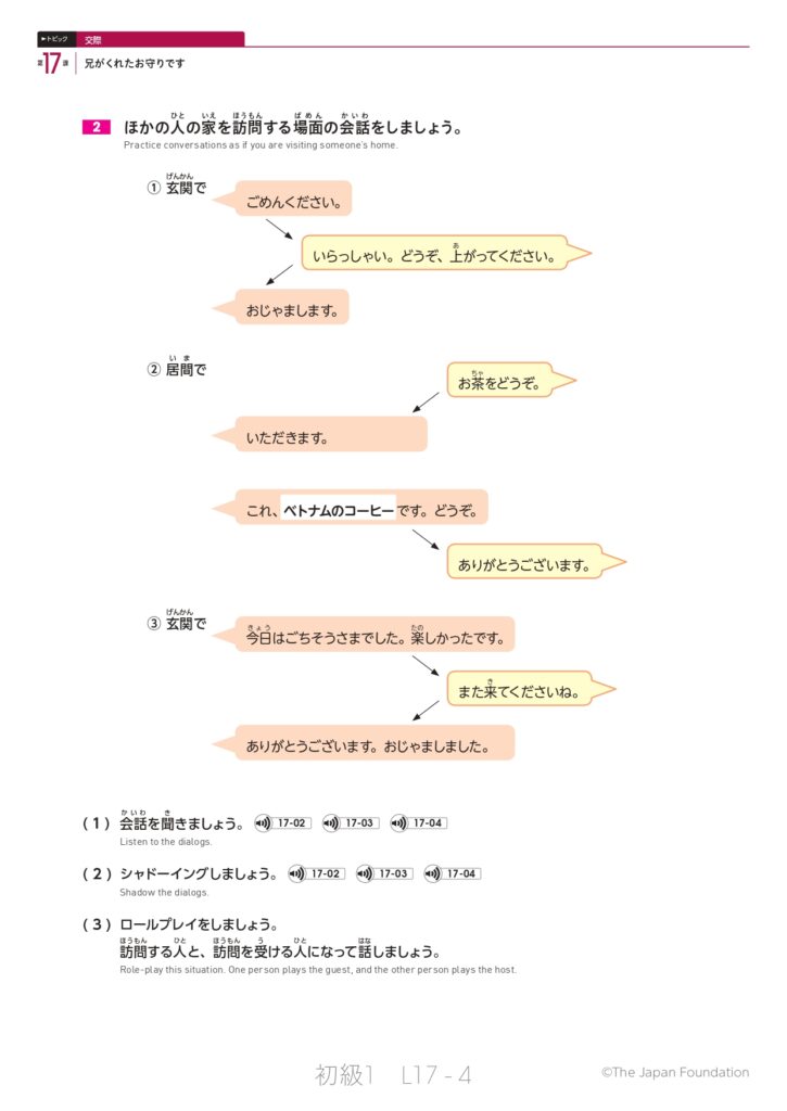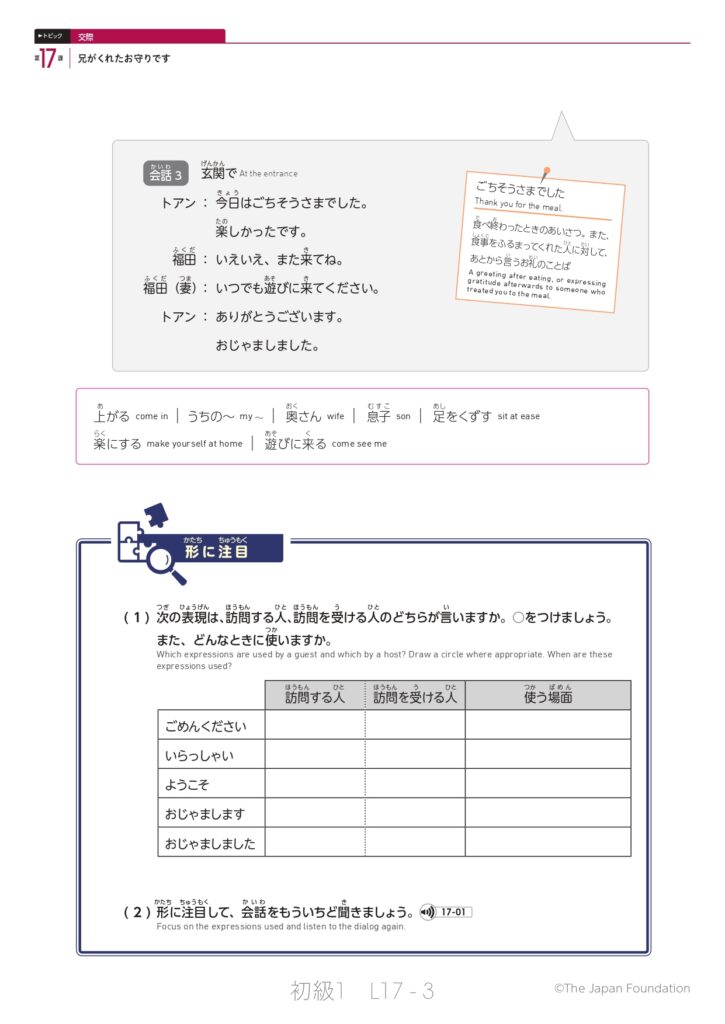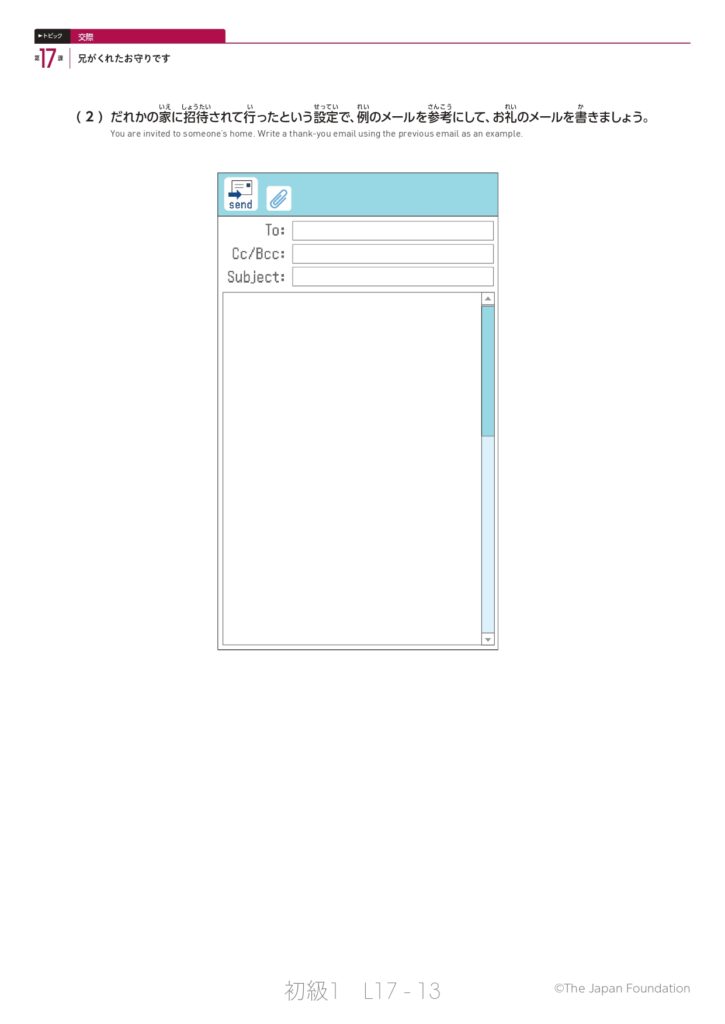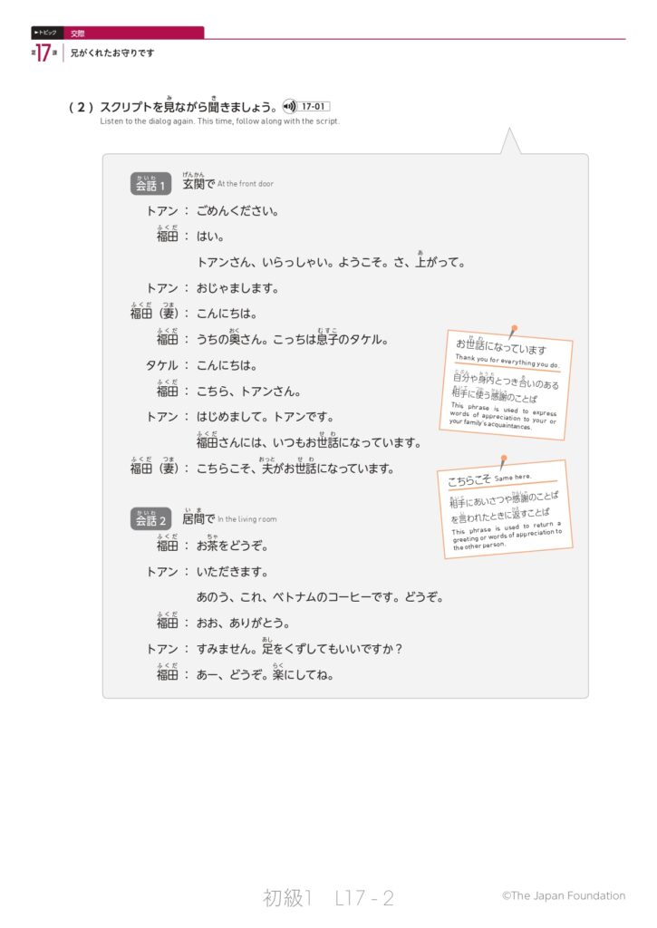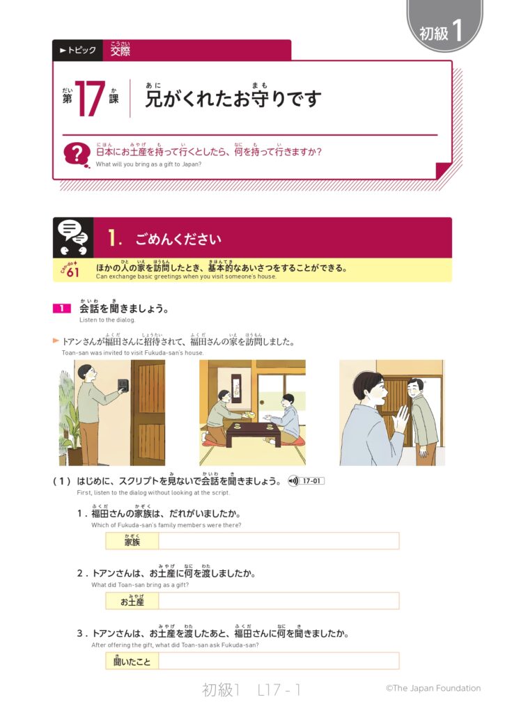 第17課「兄がくれたお守りです」(トピック:交際)