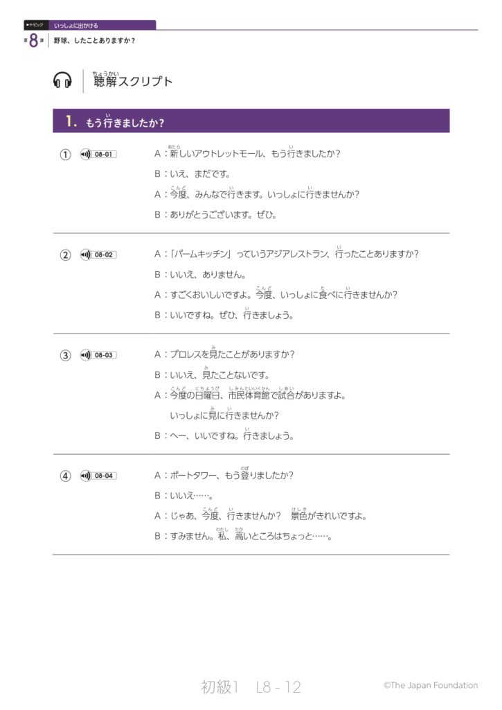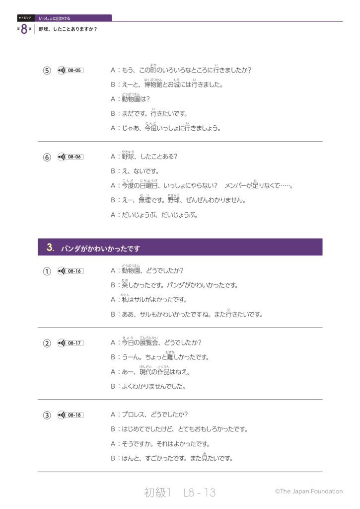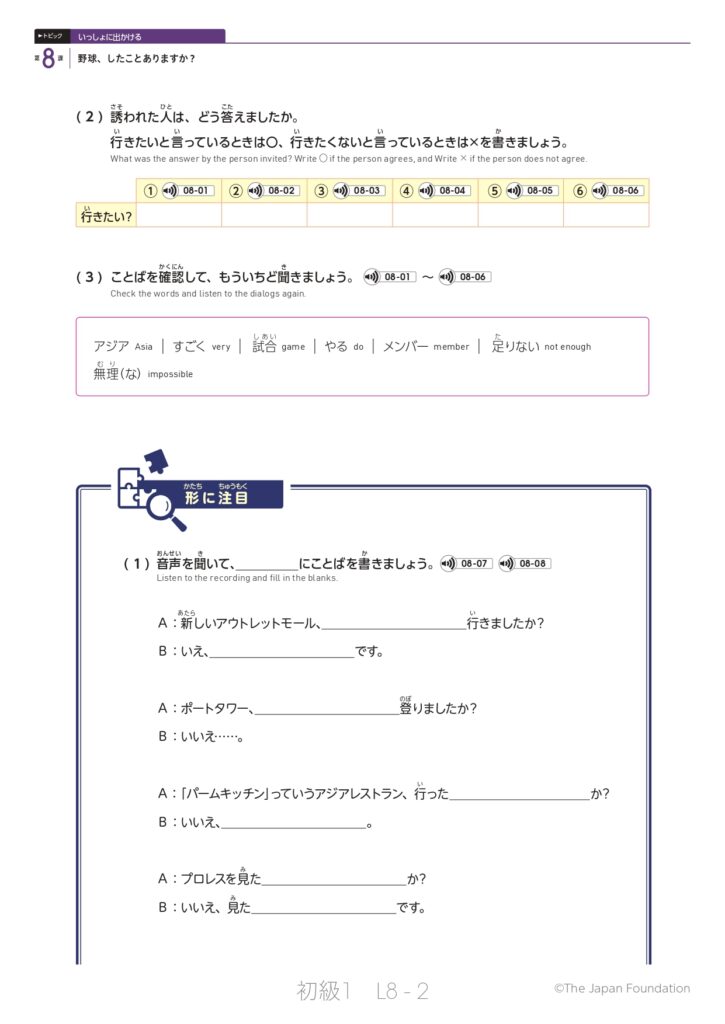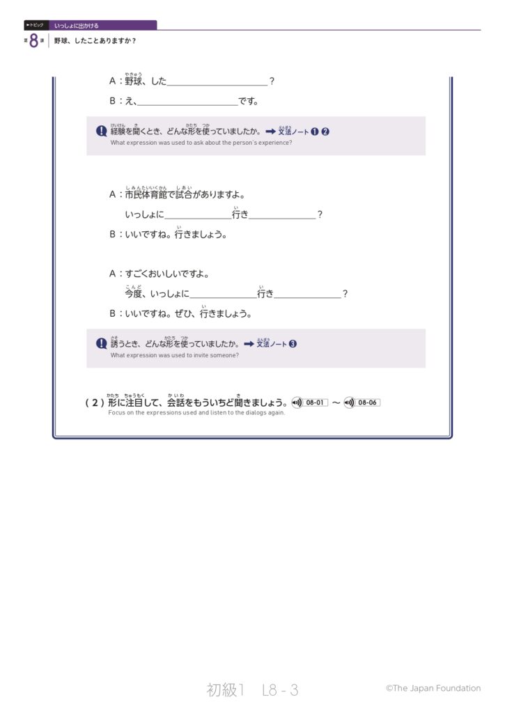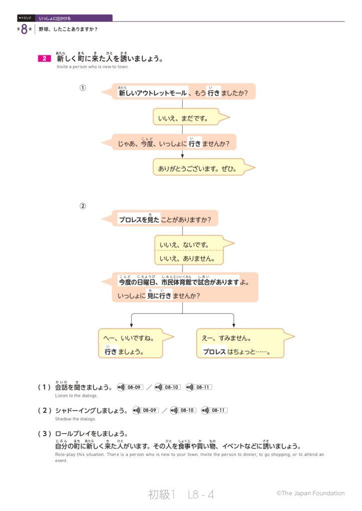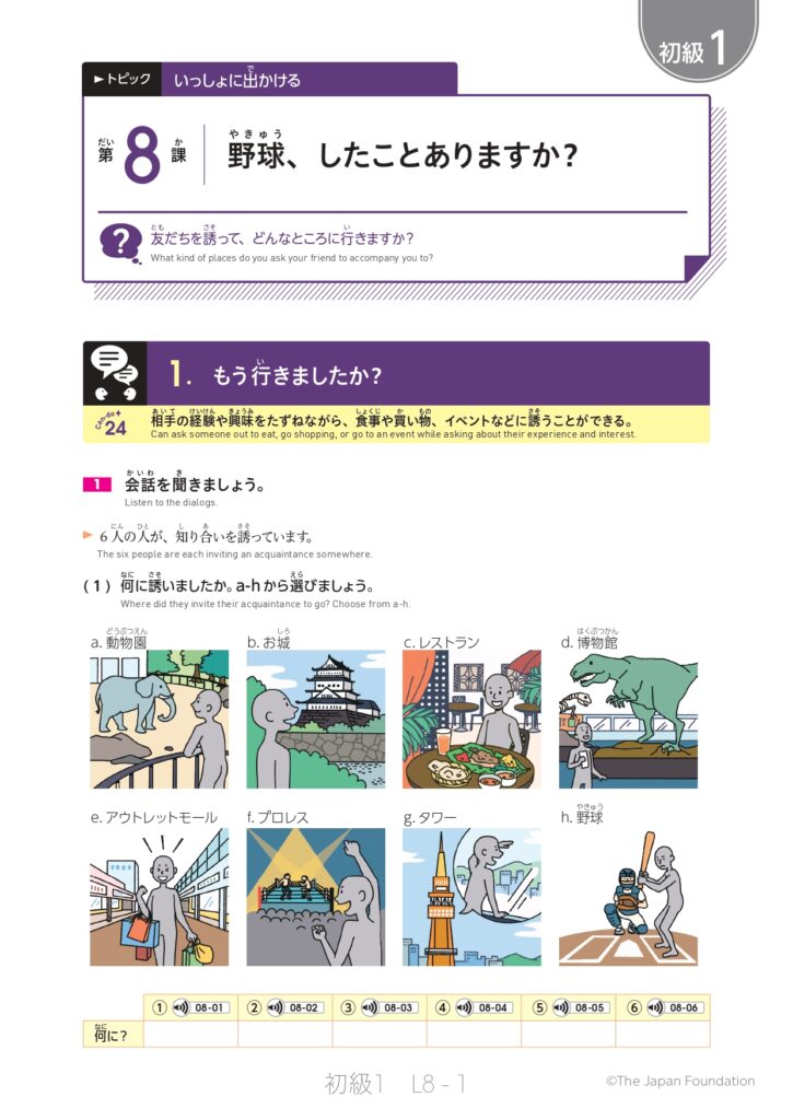 第8課「野球、したことありますか?」(トピック:いっしょに出かける)