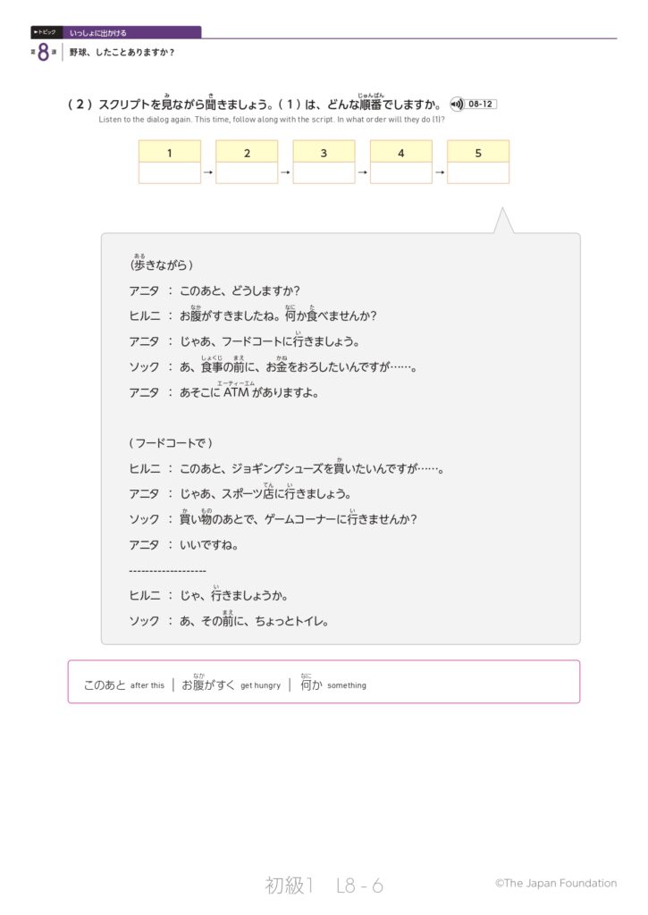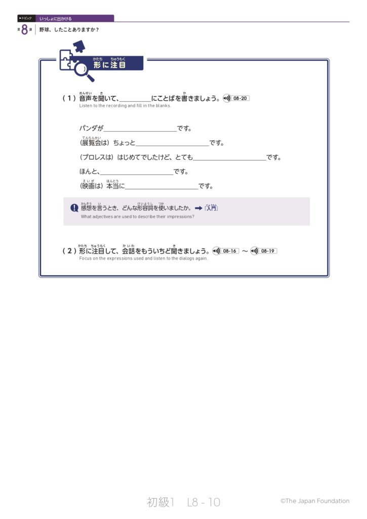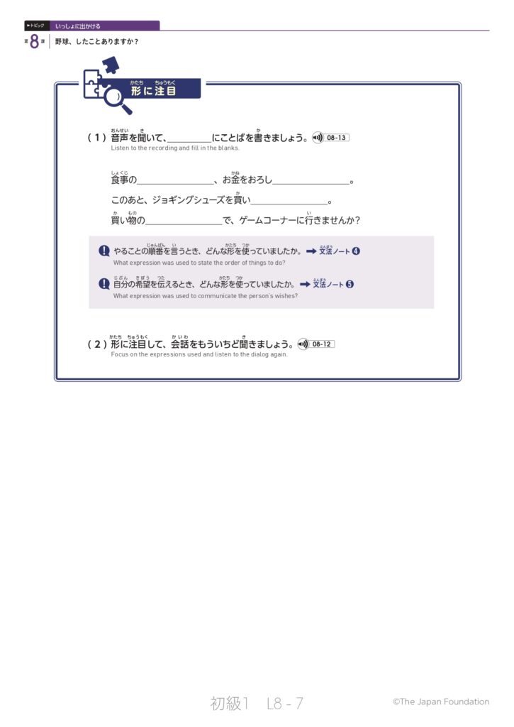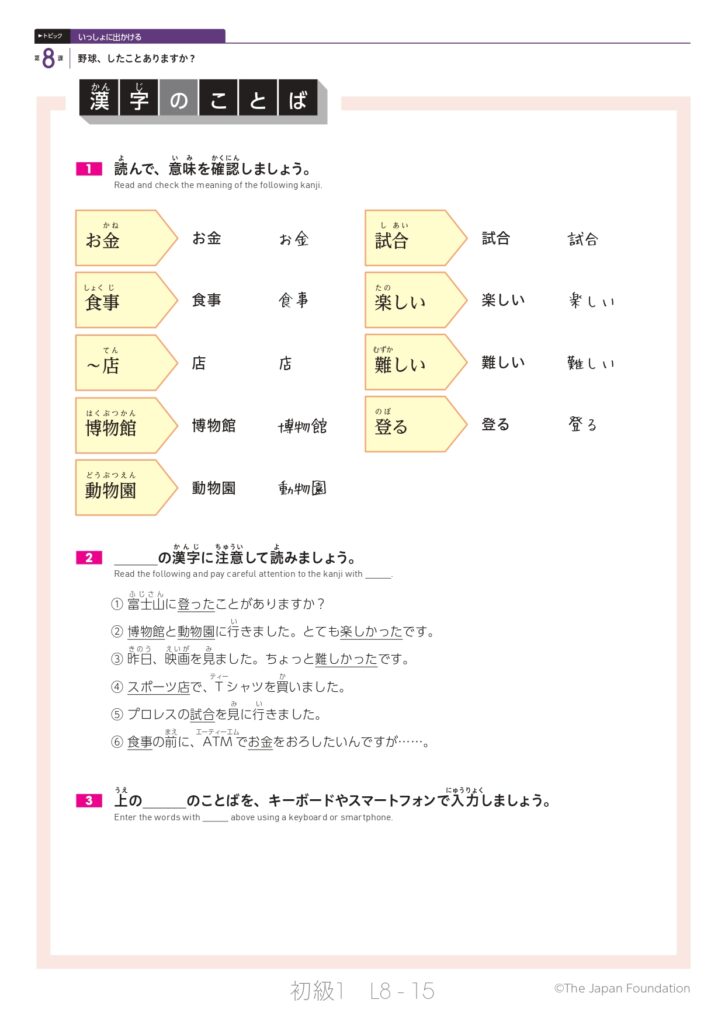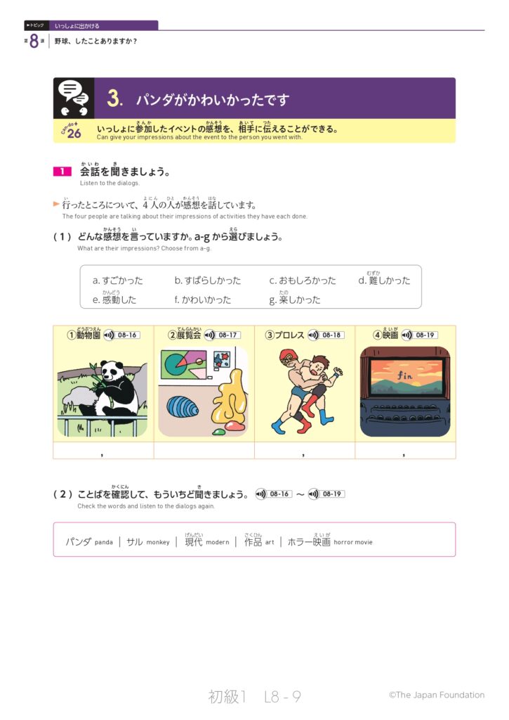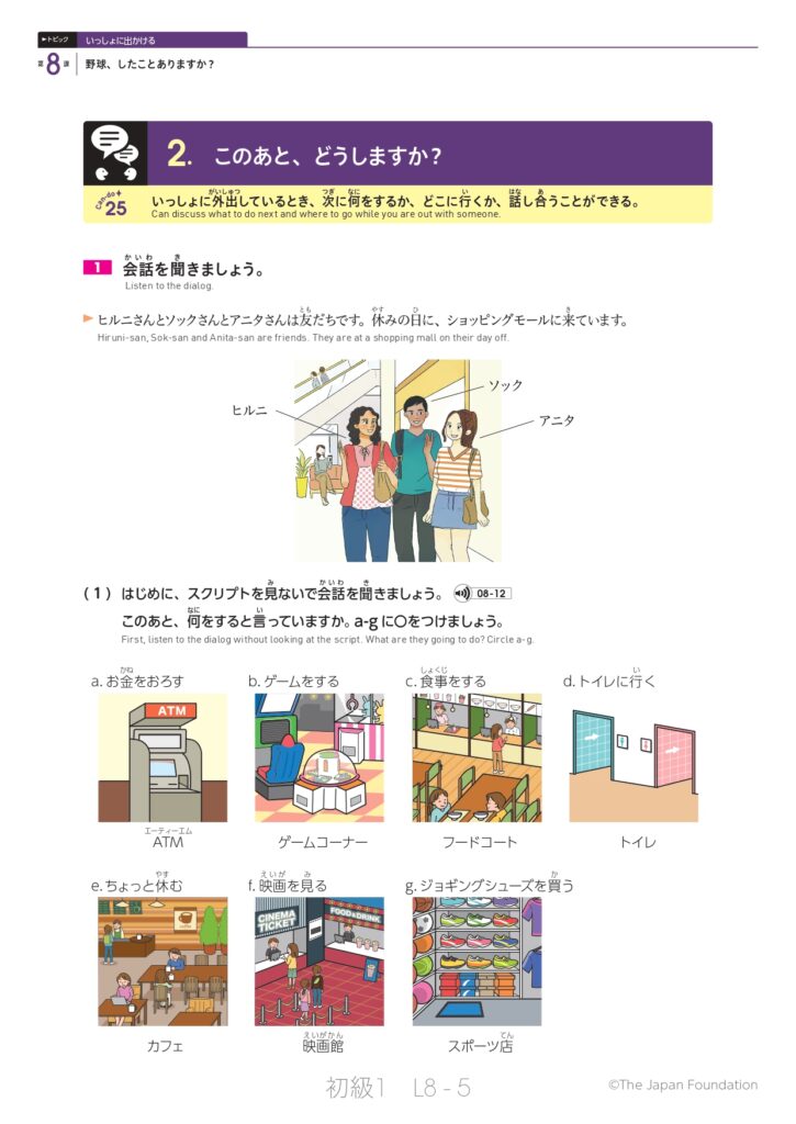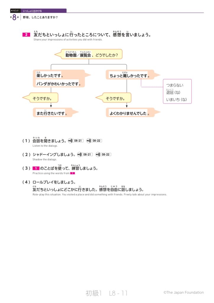 第8課「野球、したことありますか?」(トピック:いっしょに出かける)