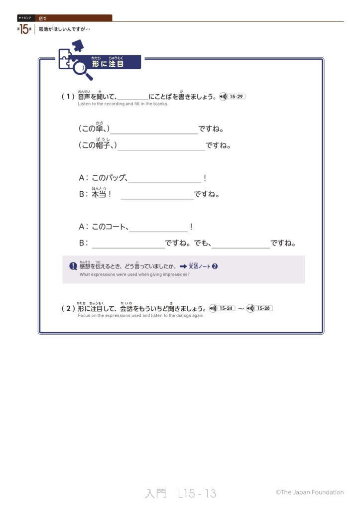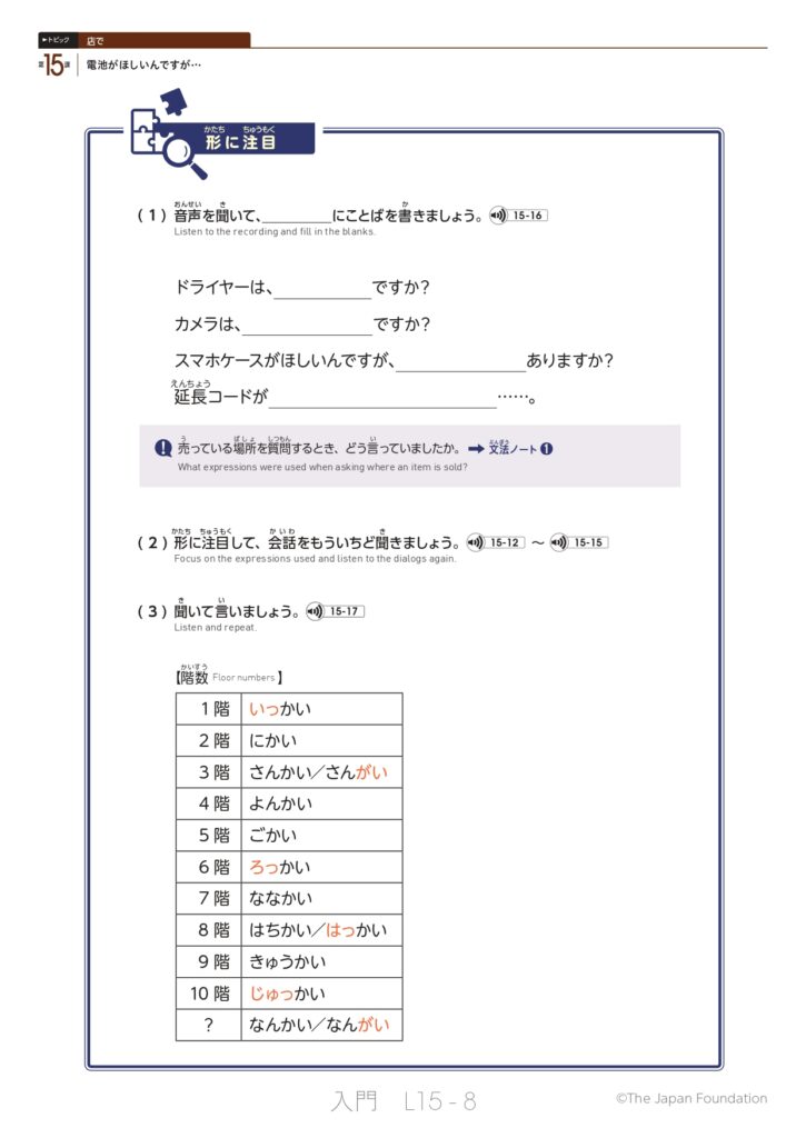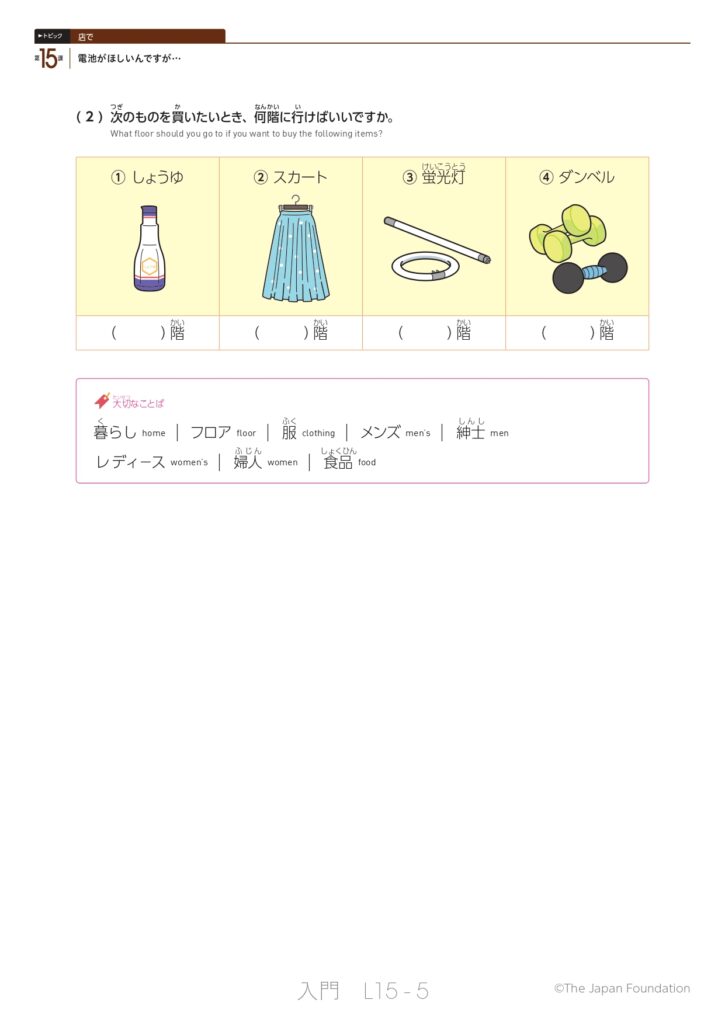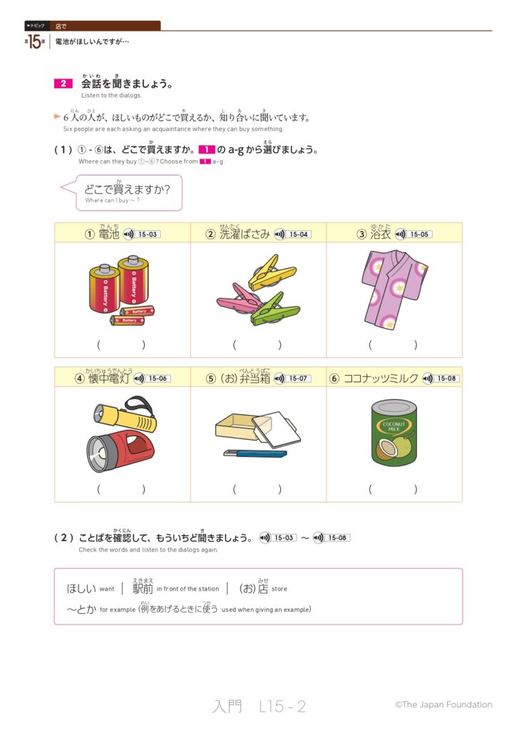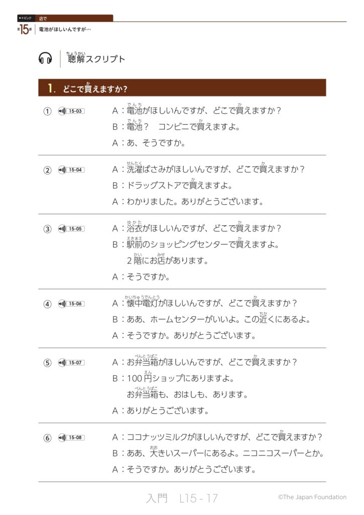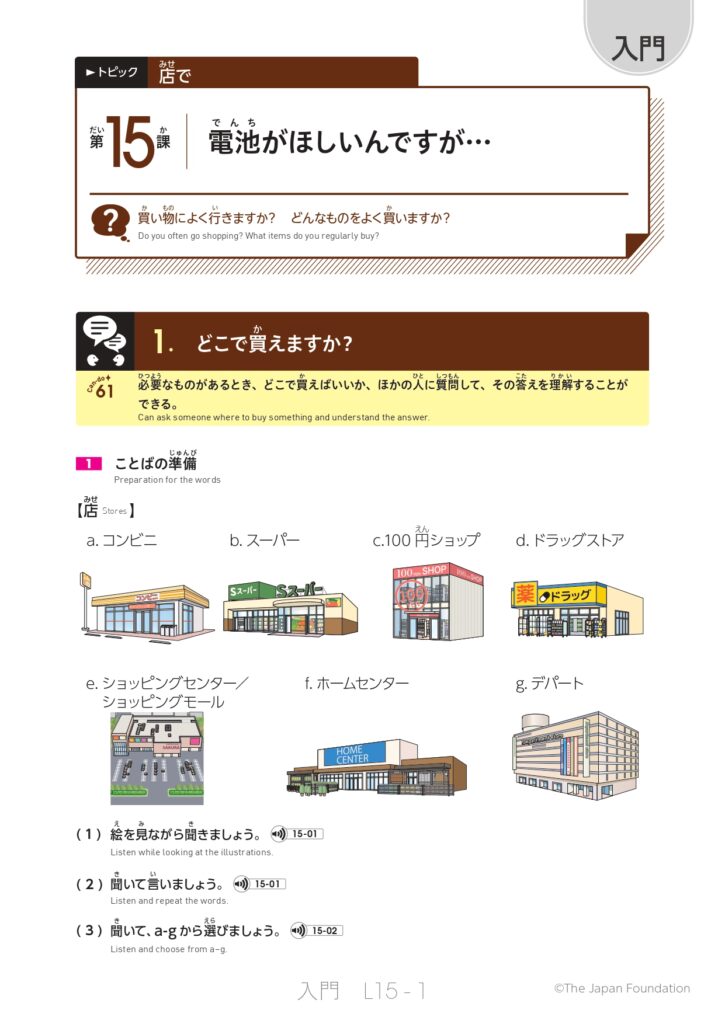 第15課 電池がほしいんですが… (トピック:店で)