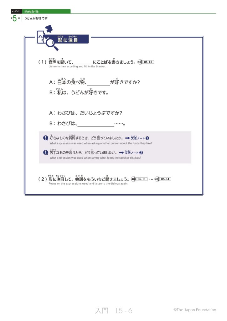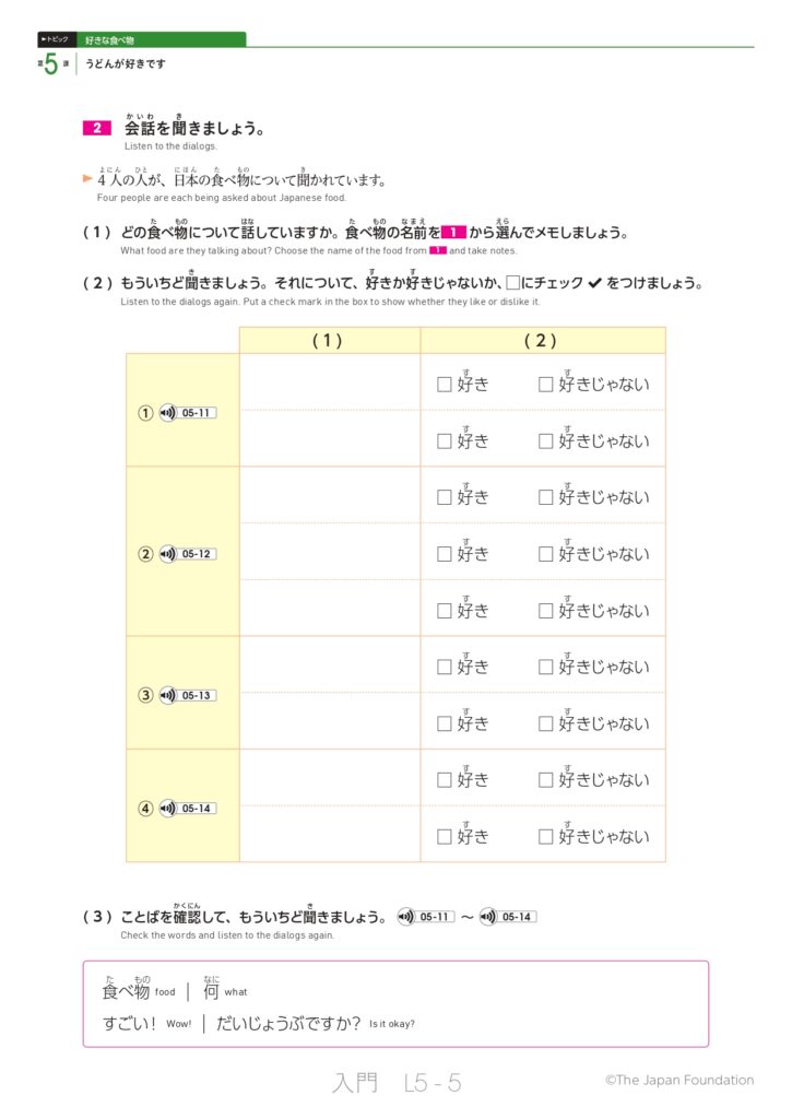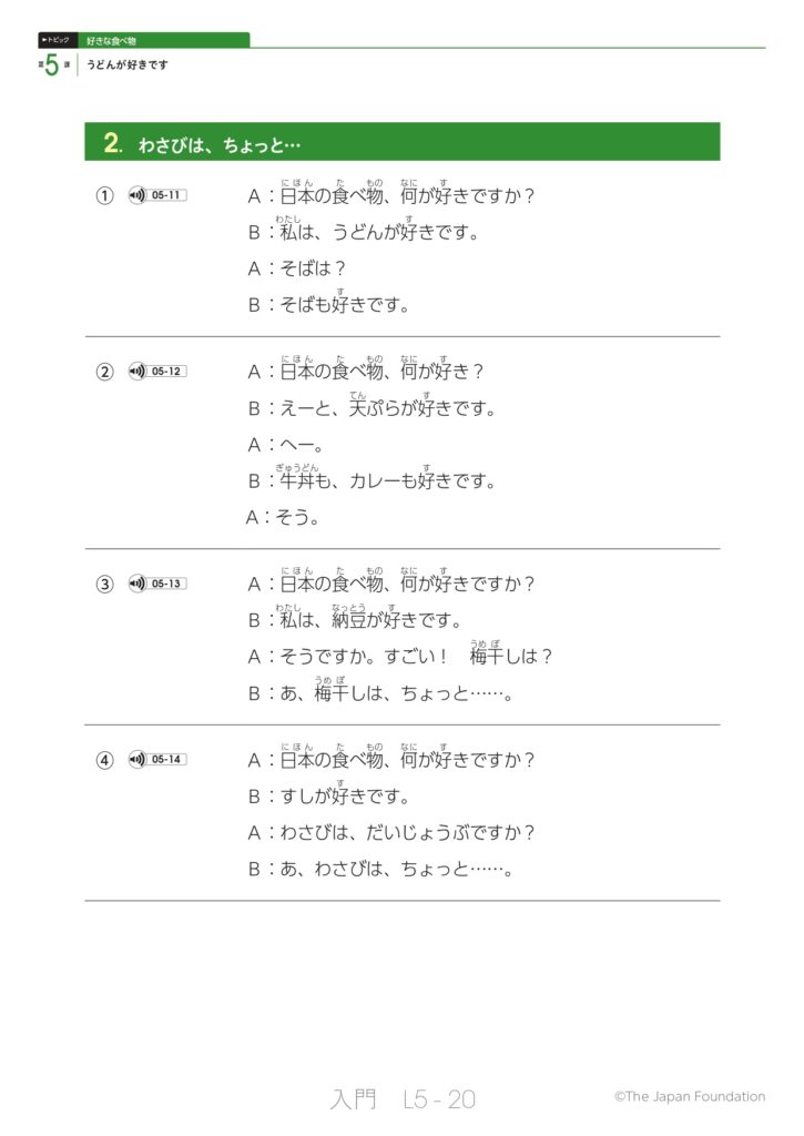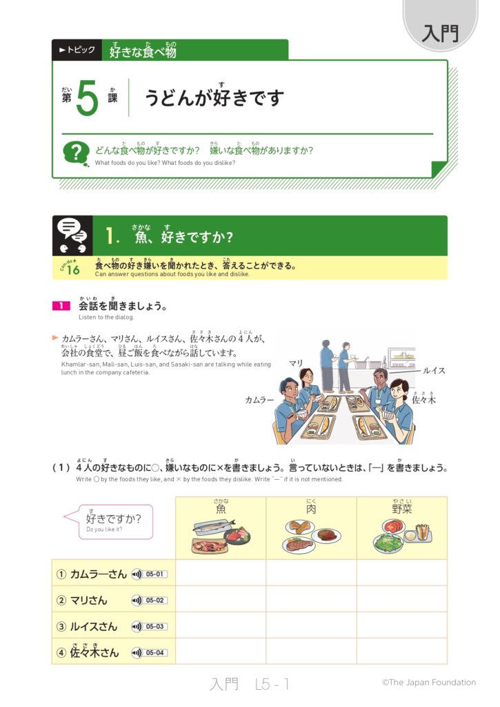第5課 うどんが好きです (トピック:好きな食べ物)