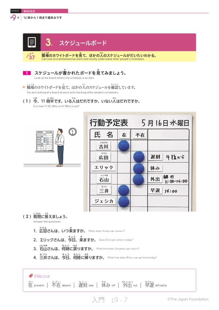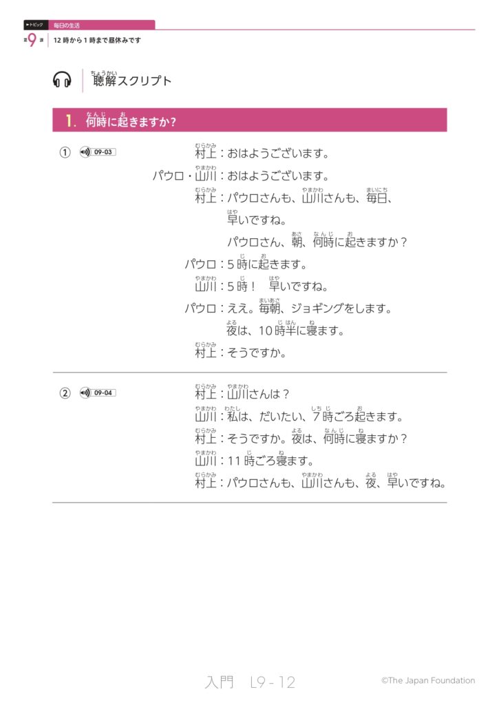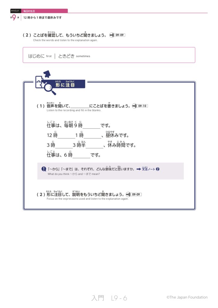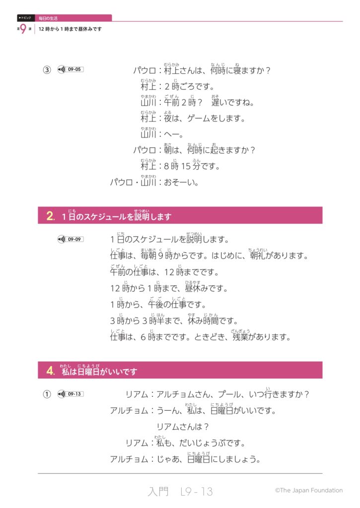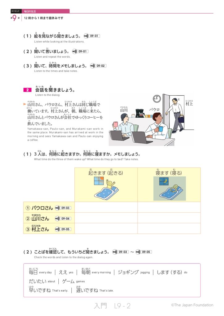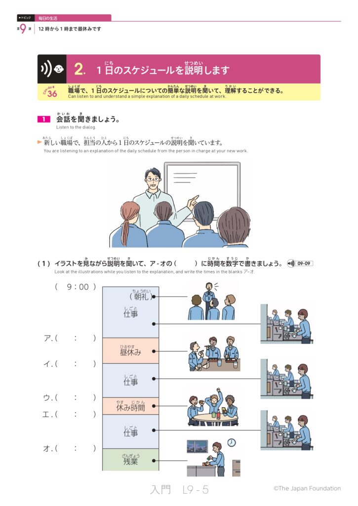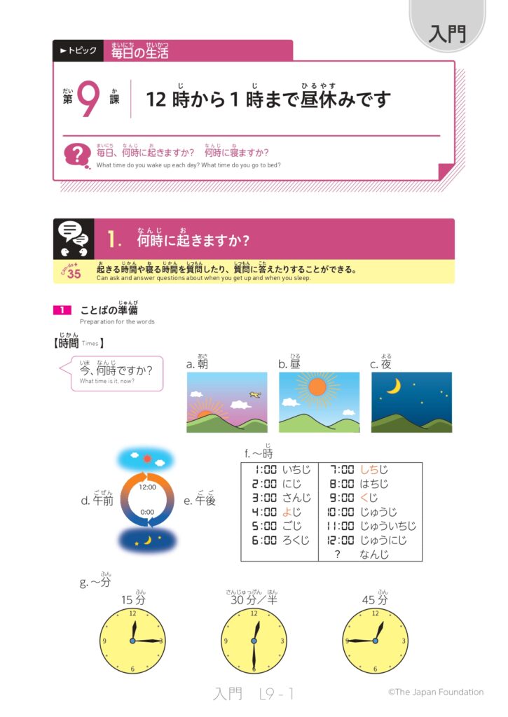 第9課 12時から1時まで昼休みです (トピック:毎日の生活)