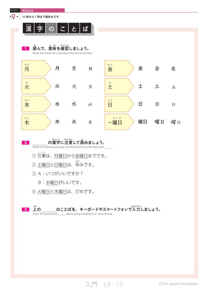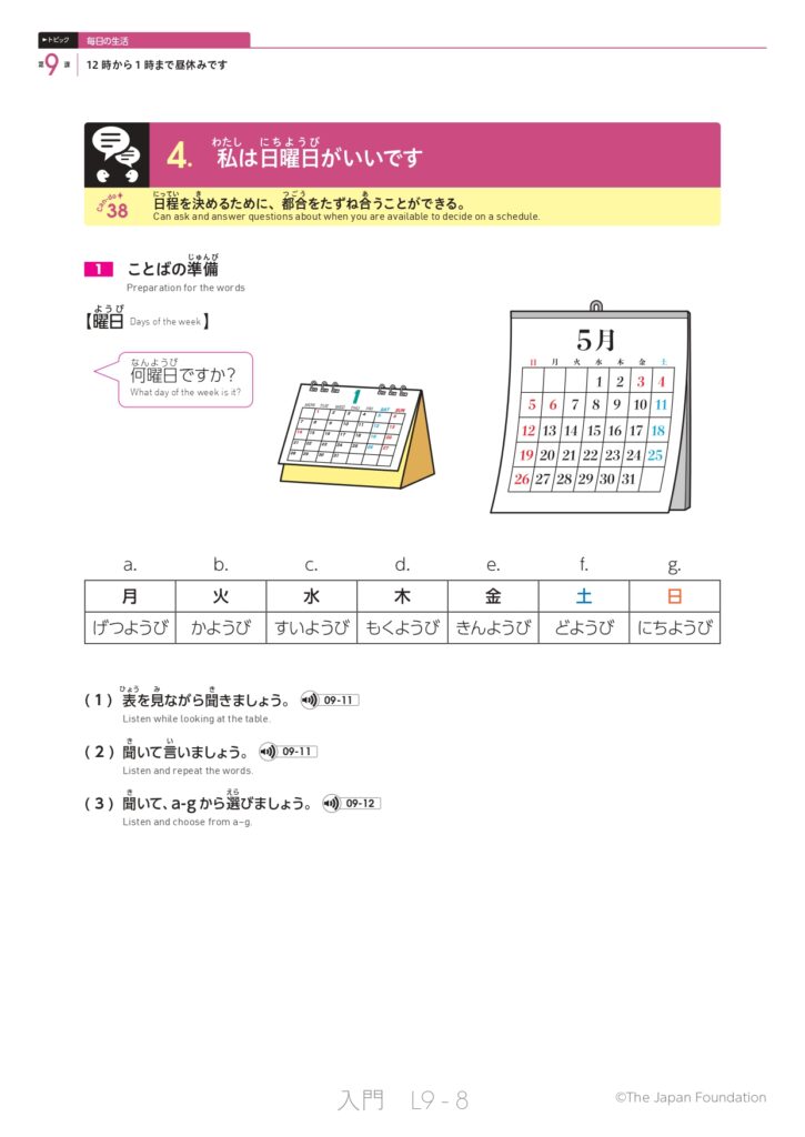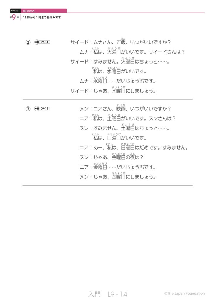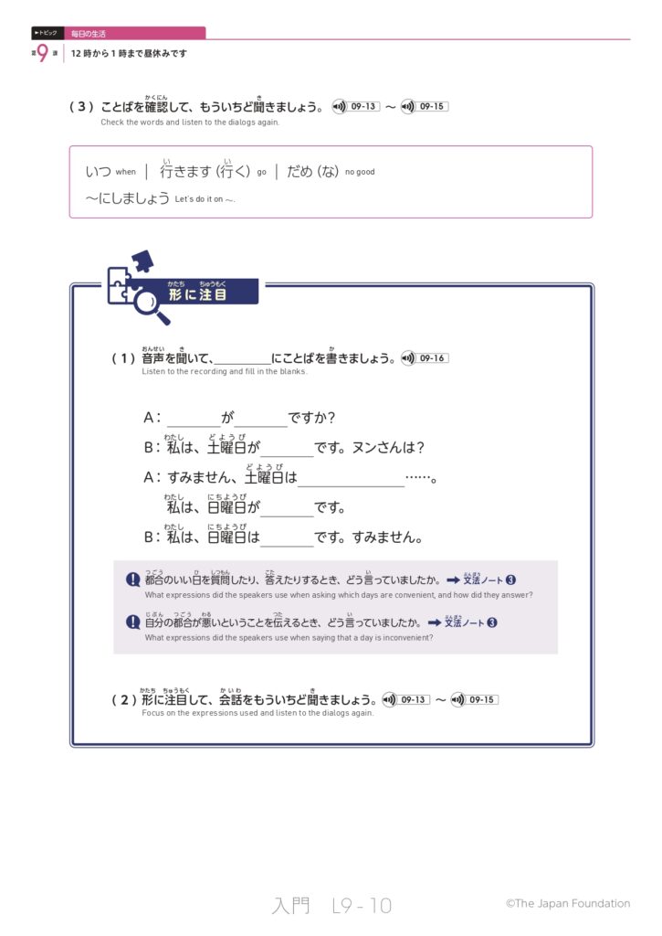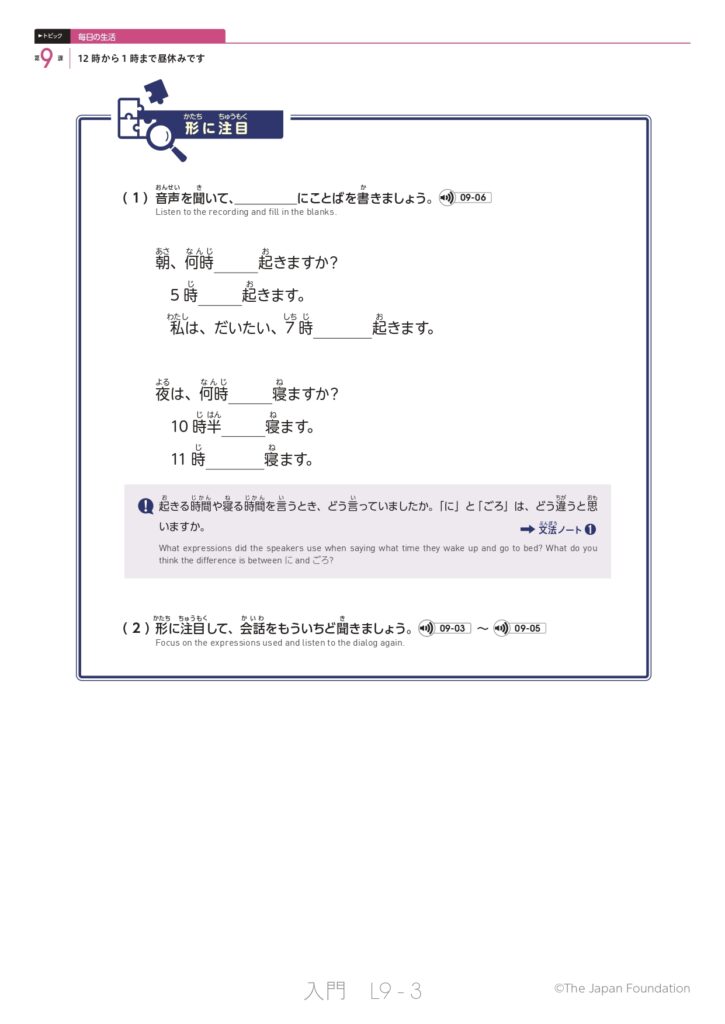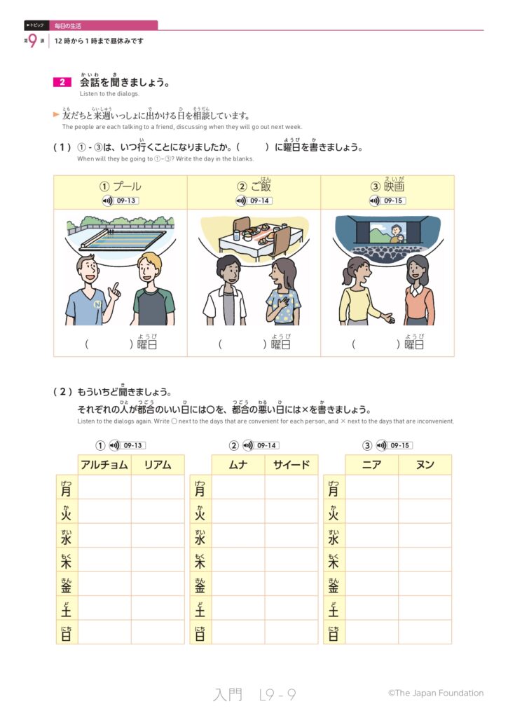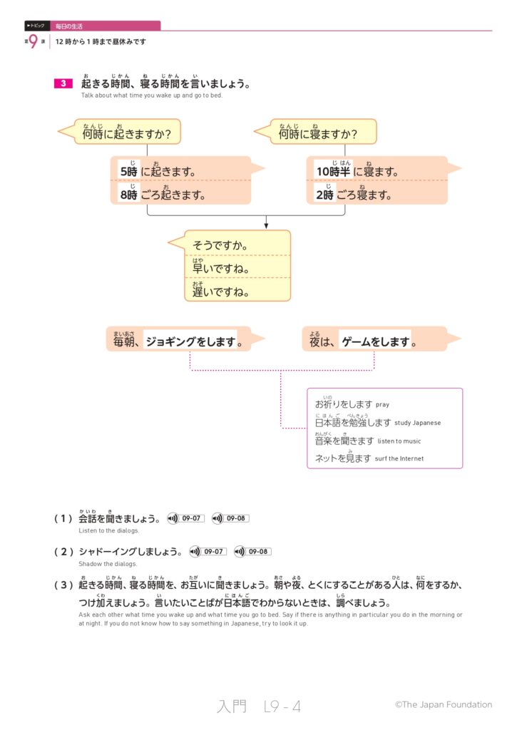 第9課 12時から1時まで昼休みです (トピック:毎日の生活)